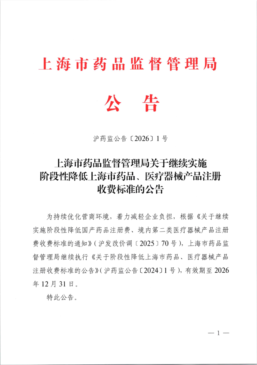 沪药监公告〔2026〕1号