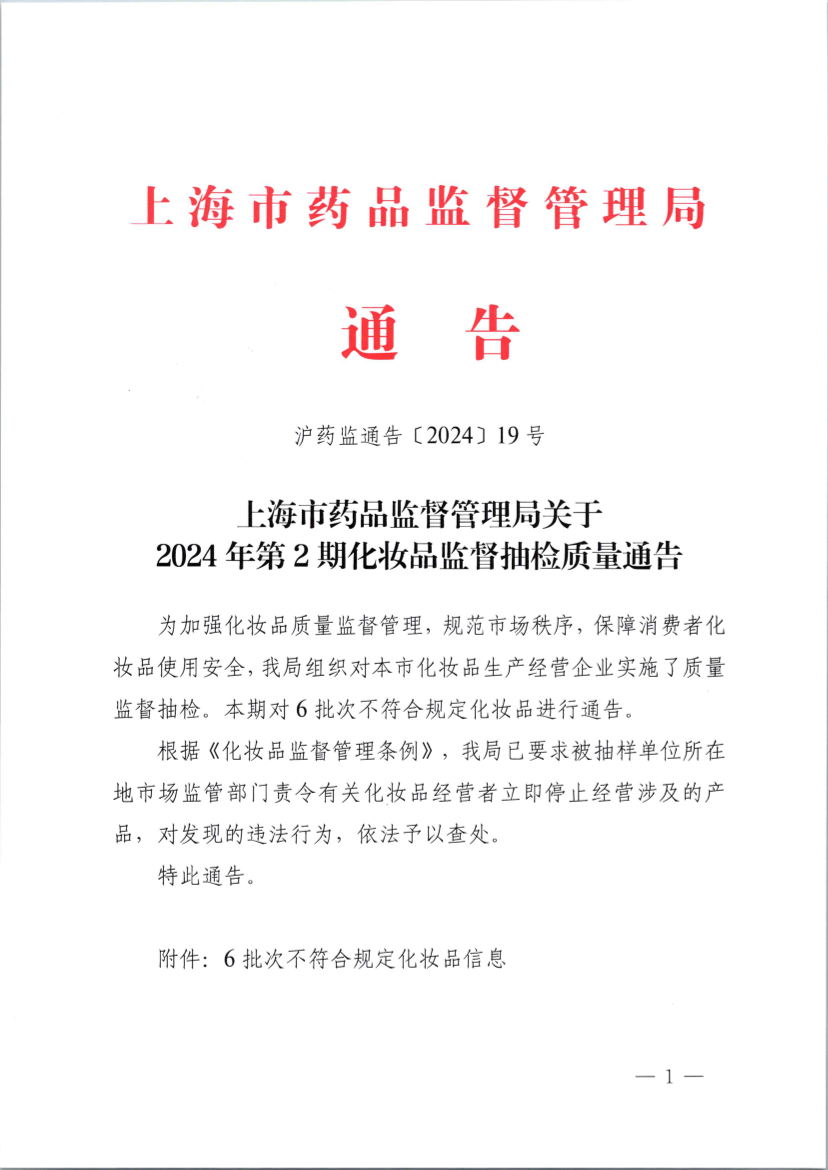 为加强化妆品质量监督管理,规范市场秩序,保障消费者化妆品使用安全,我局组织对本市化妆品生产经营企业实施了质量监督抽检。本期对6批次不符合规定化妆品进行通告。