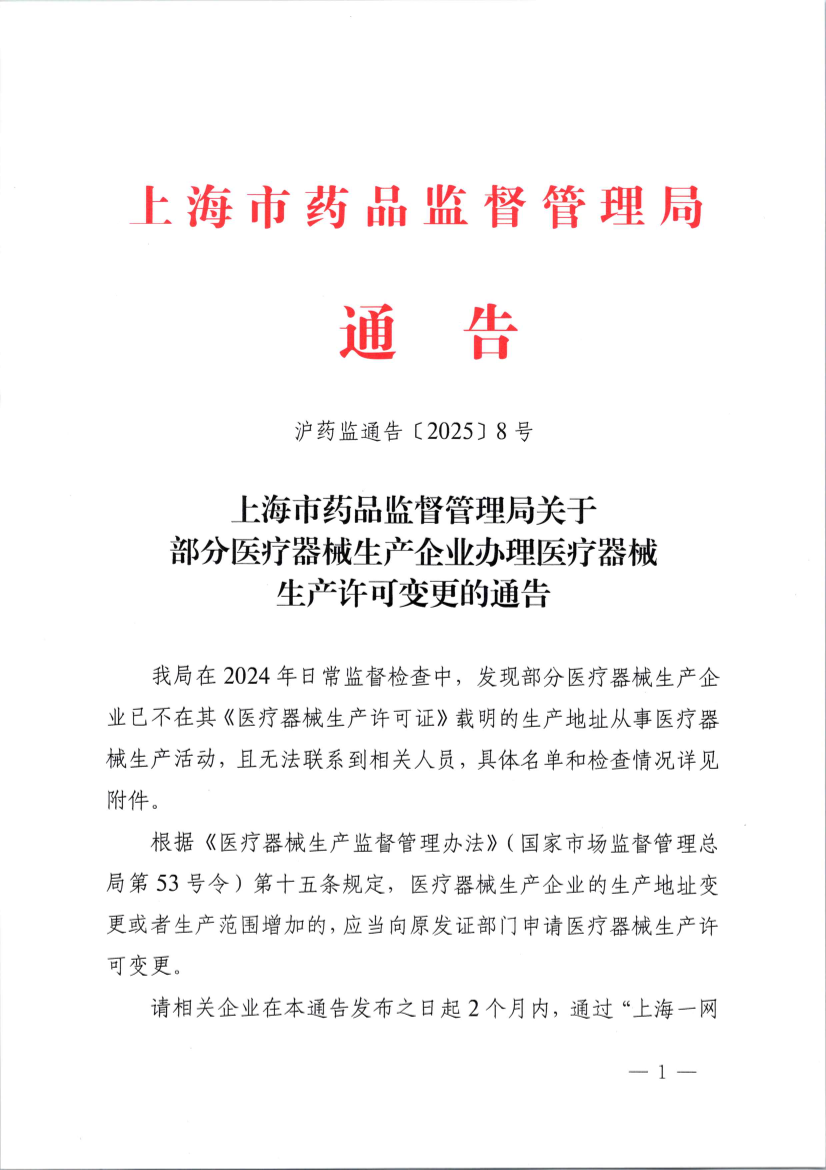 沪药监通告〔2025〕8号