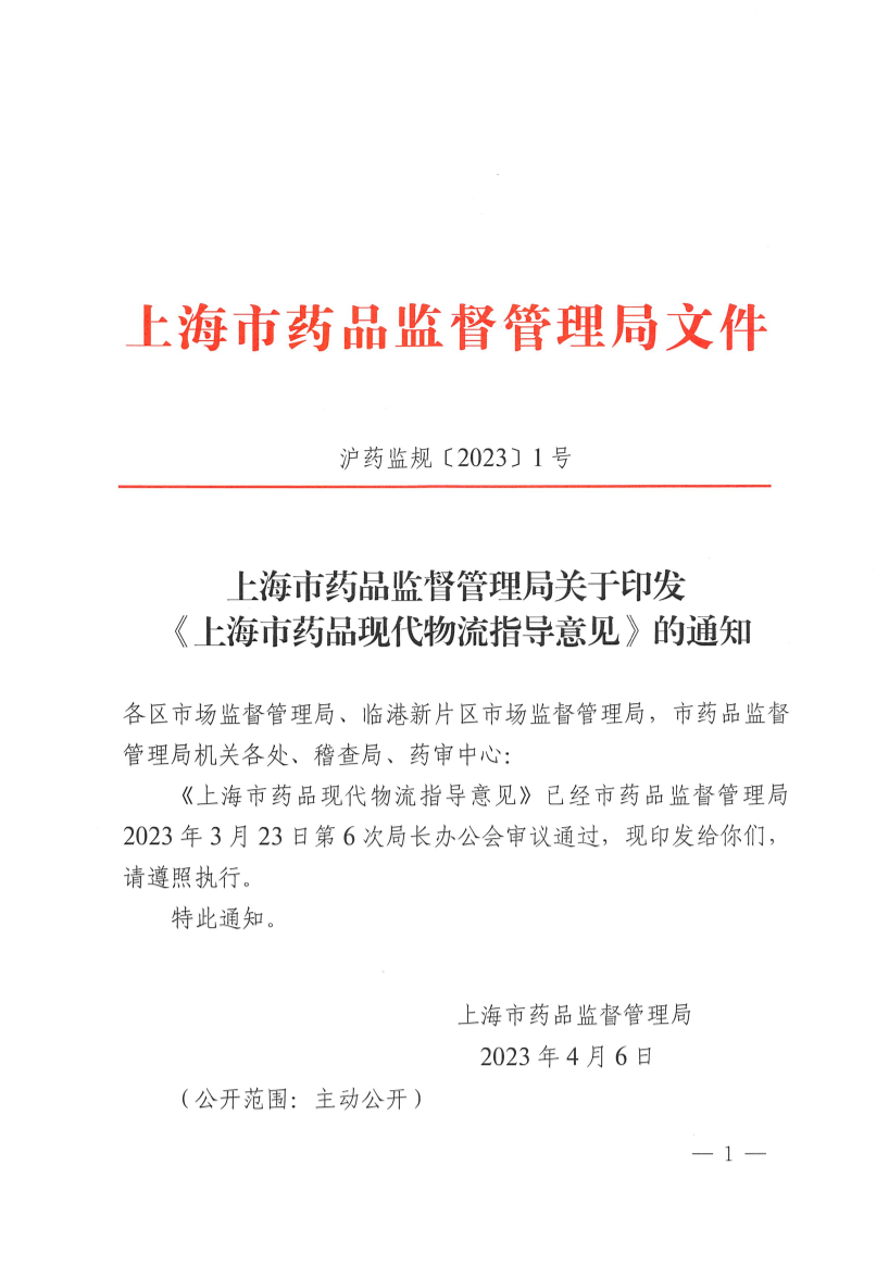 (有效期至2028年4月5日)AG真人关于印发《上海市药品现代物流指导意见》的通知