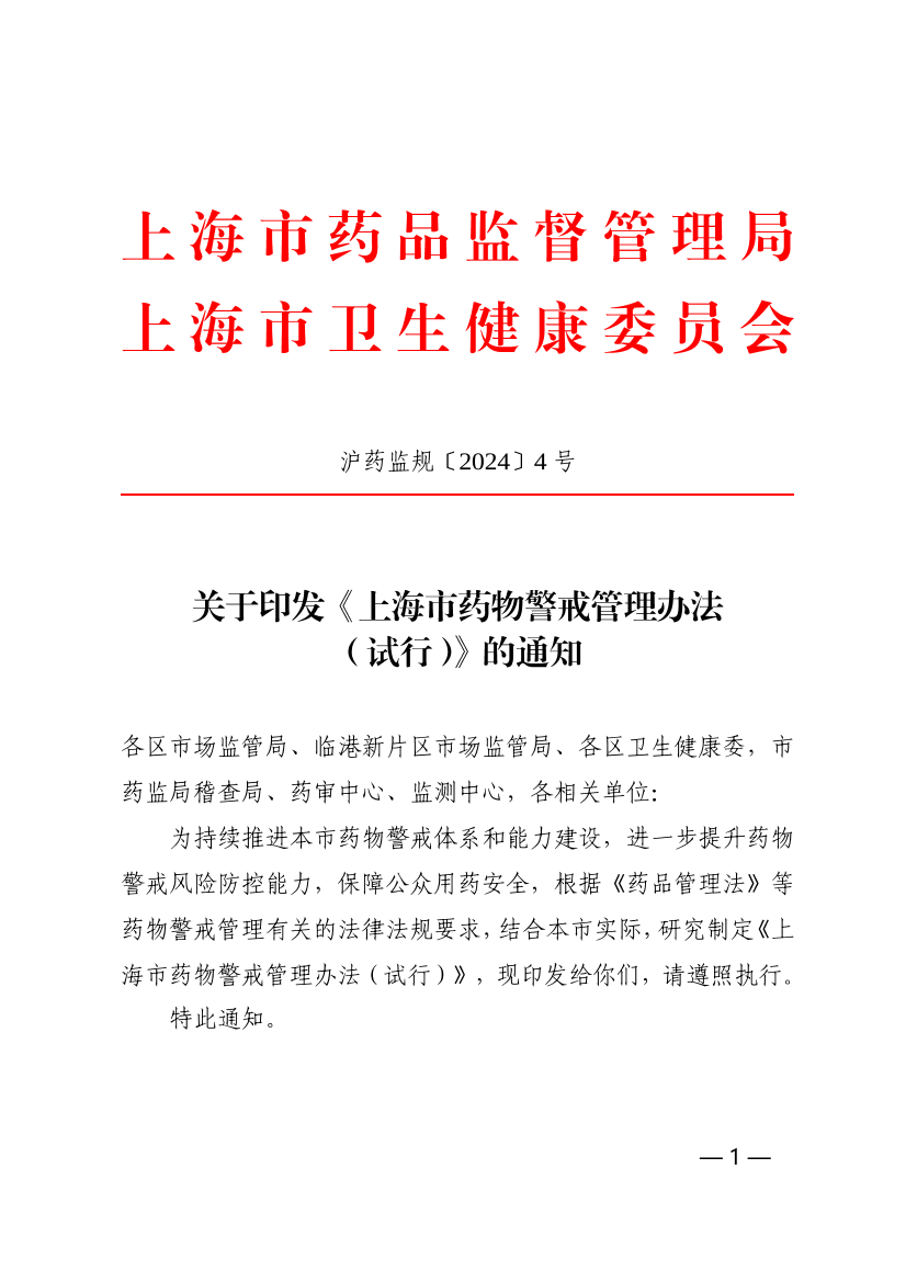 (有效期至2026年7月31日)AG真人 上海市卫生健康委员会关于印发《上海市药物警戒管理办法(试行)》的通知
