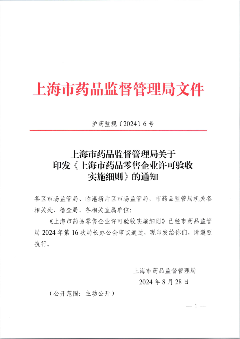 (有效期至2029年8月28日)AG真人关于印发《上海市药品零售企业许可验收实施细则》的通知