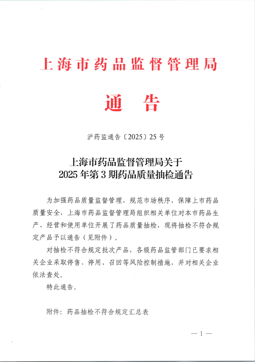 沪药监通告〔2025〕25号