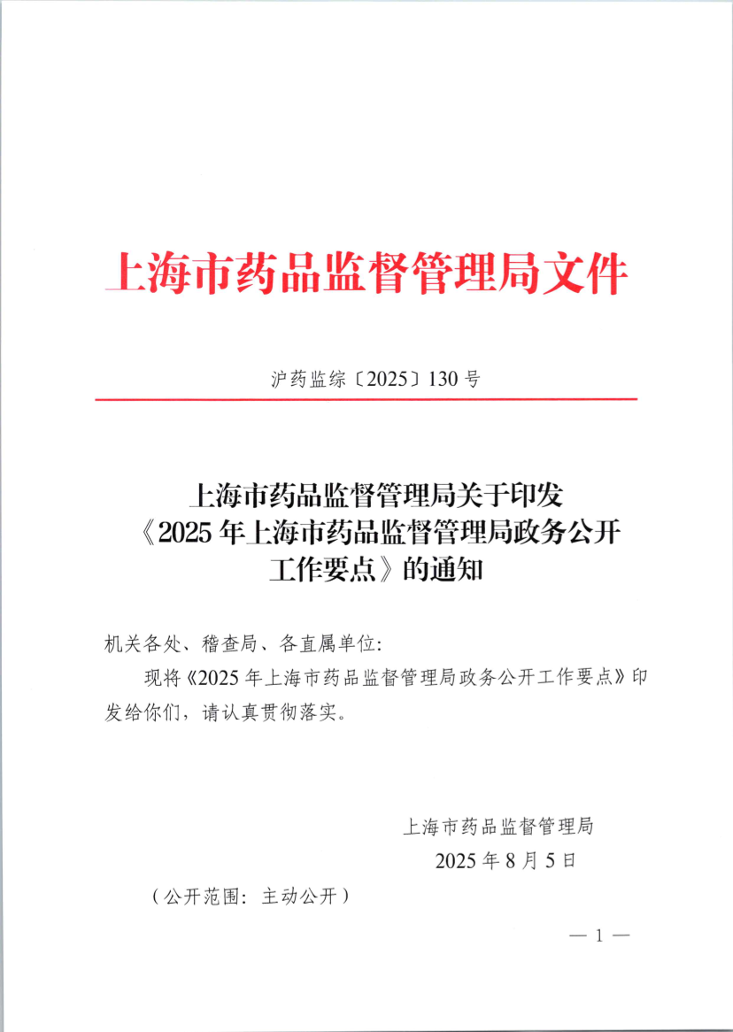 沪药监综〔2025〕130号